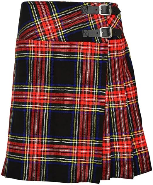 Black Stewart Tartan Ladies Kilt Skirt acrylic wool fabric