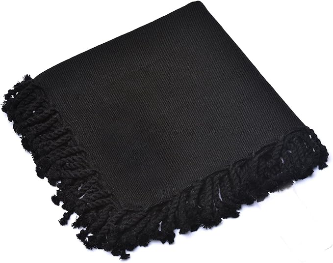 Professional Solid Black Fabric Apron: All-Side Fringe